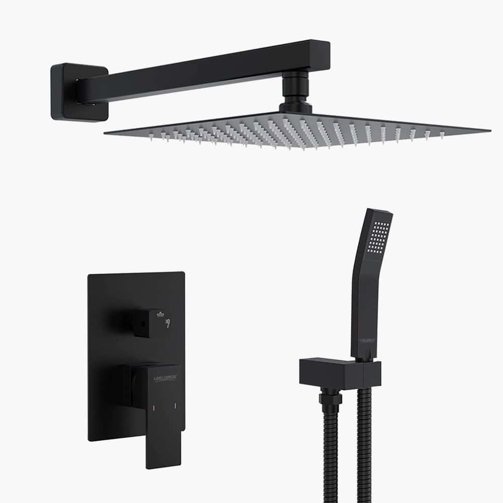 Ensemble de robinetterie et de valve de douche de luxe noir mat avec douchette à main | Système de douche encastré