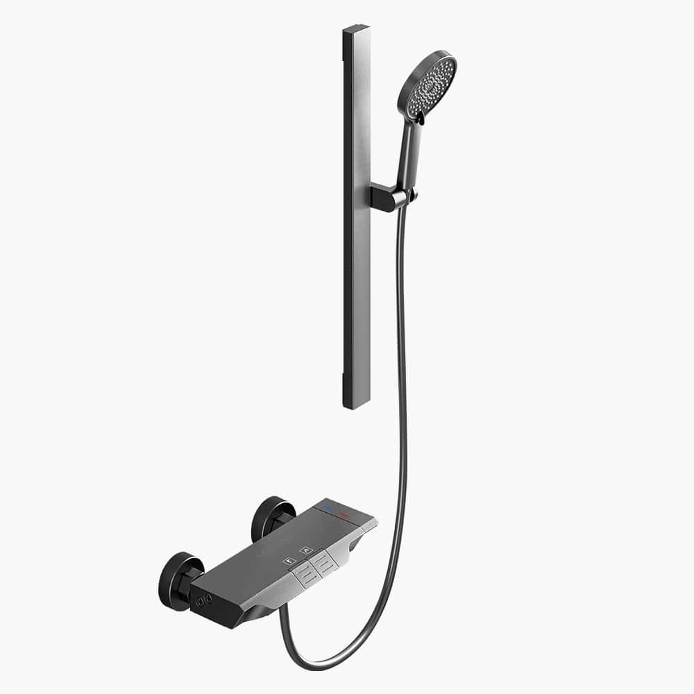 Ensemble de douche à main haute pression en acier inoxydable – Pommeau de douche rond et température réglable
