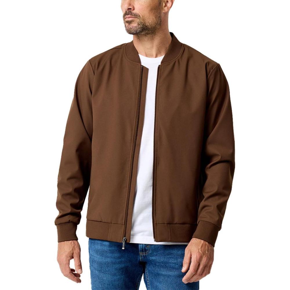 INTO THE AM Lightweight Bomber Jacket Men S-4XL – Lightweight Bomber Jacket Casual Zip-Up Outerwear for Fall(Dark Brown)