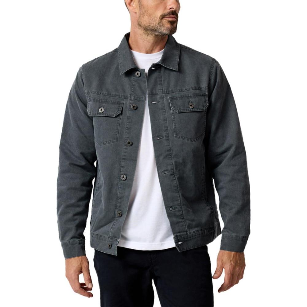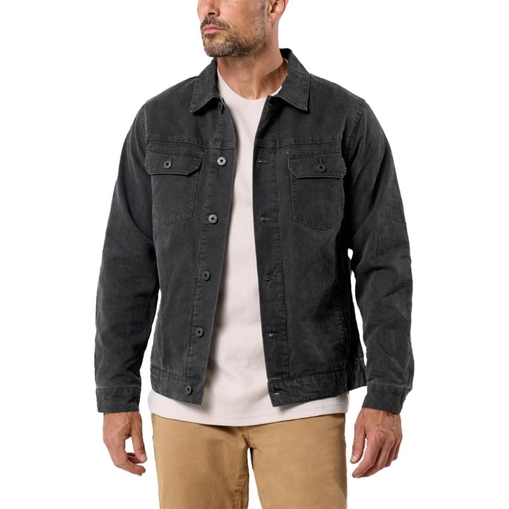INTO THE AM Men’s Tradesman Canvas Trucker Jacket S-4XL – Flannel-Lined Rugged Workwear Coat(Charcoal)
