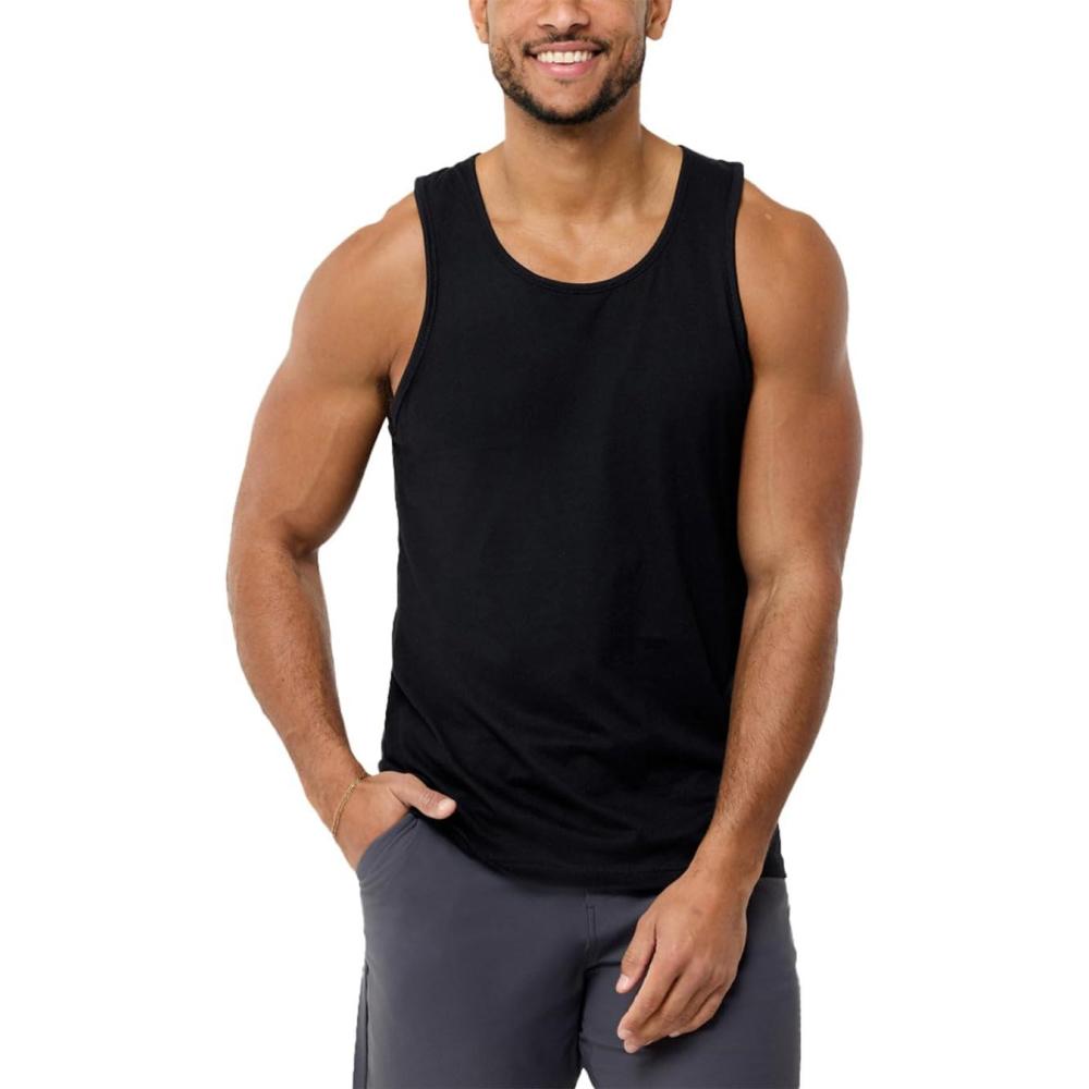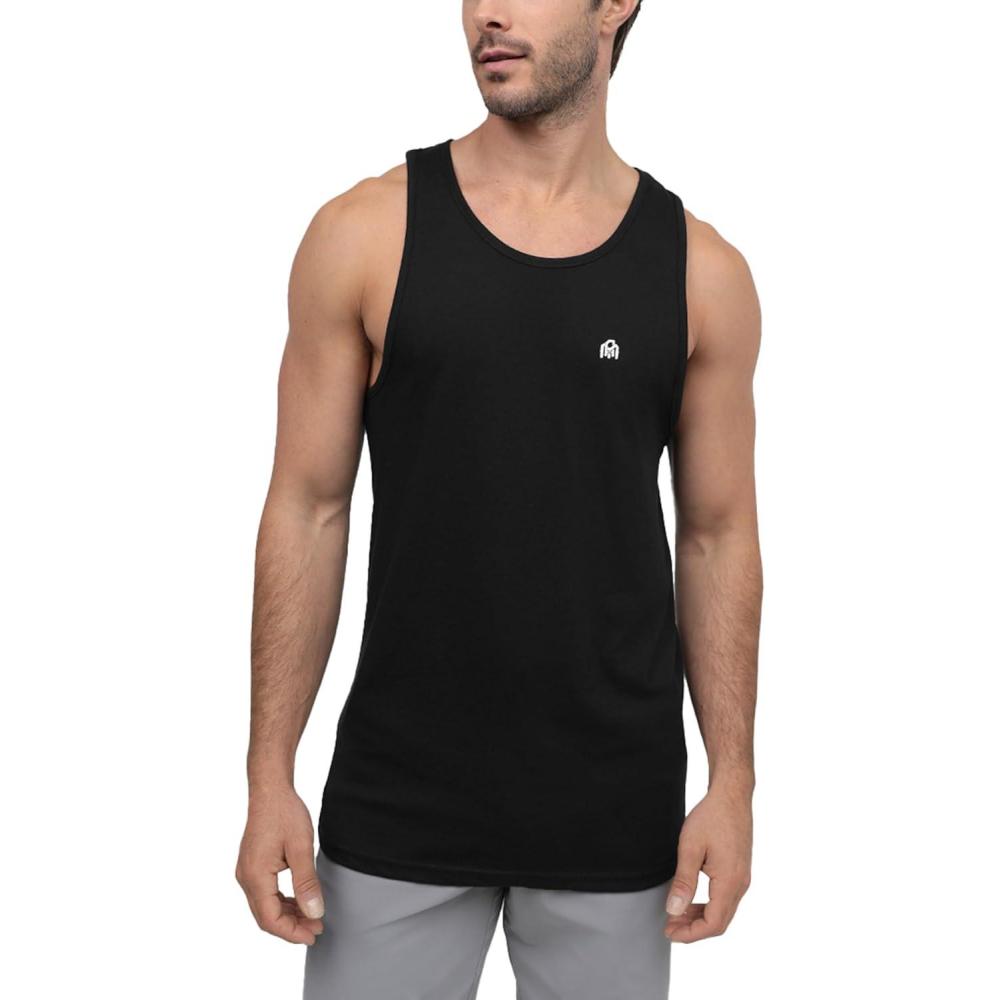 INTO THE AM Basic Tank Tops for Men – Minimal Plain Tanks for Beach Exercise Casual Wear S – 2XL(Non-branded – Black)