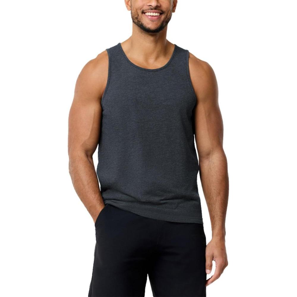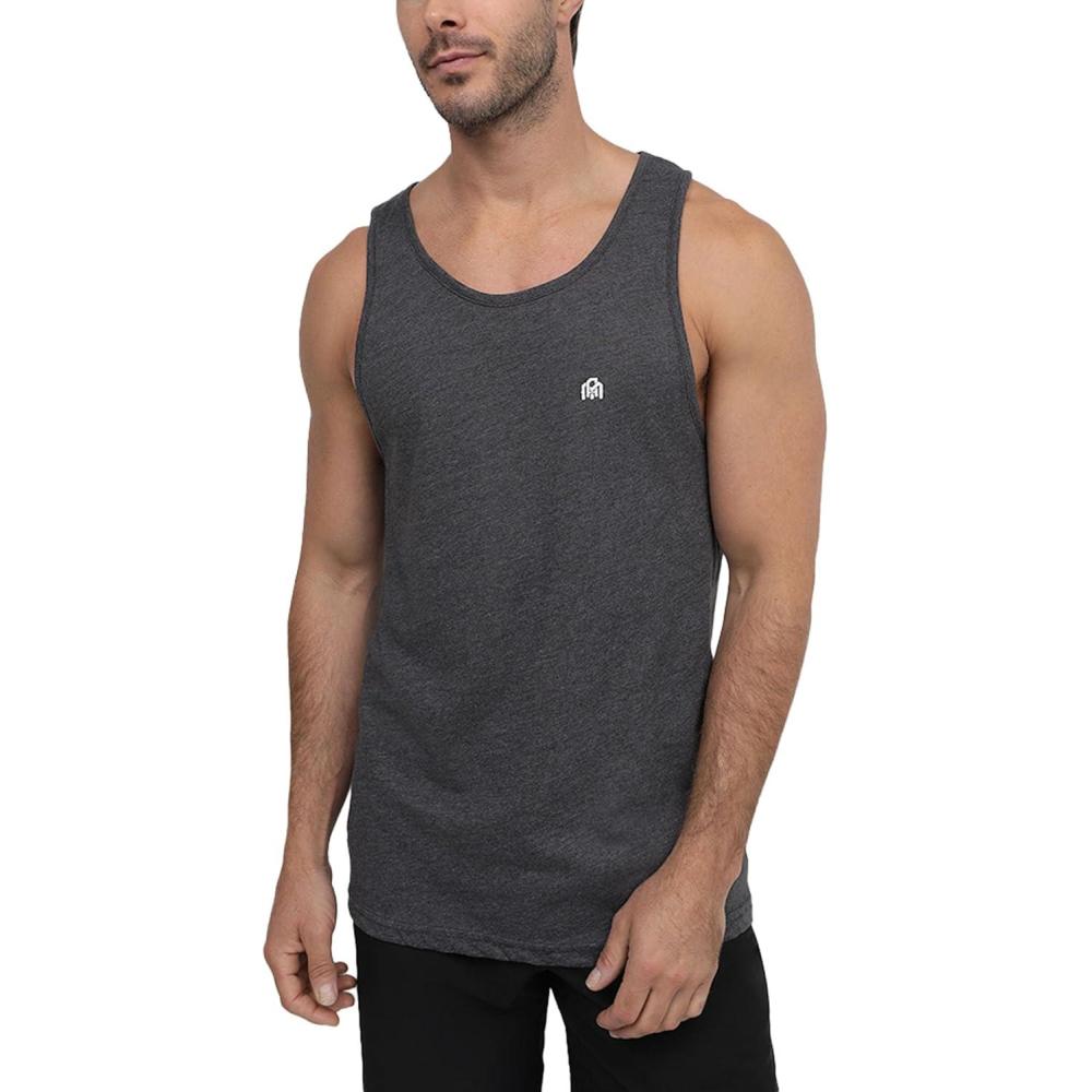 INTO THE AM Basic Tank Tops for Men – Minimal Plain Tanks for Beach Exercise Casual Wear S – 2XL(Non-branded – Charcoal)