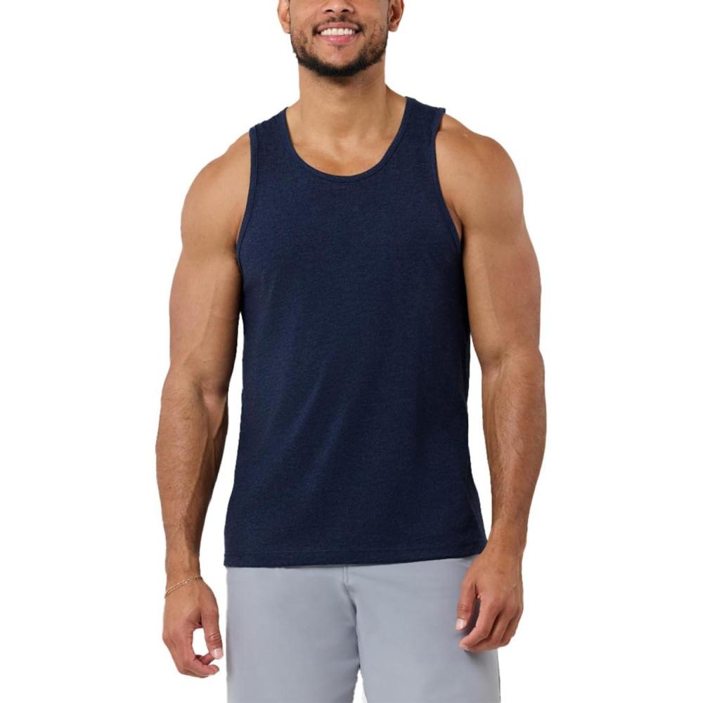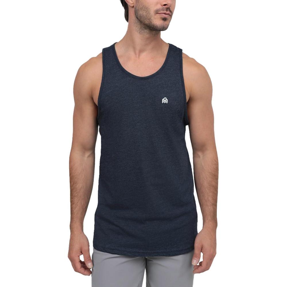 INTO THE AM Basic Tank Tops for Men – Minimal Plain Tanks for Beach Exercise Casual Wear S – 2XL(Non-branded – Navy)