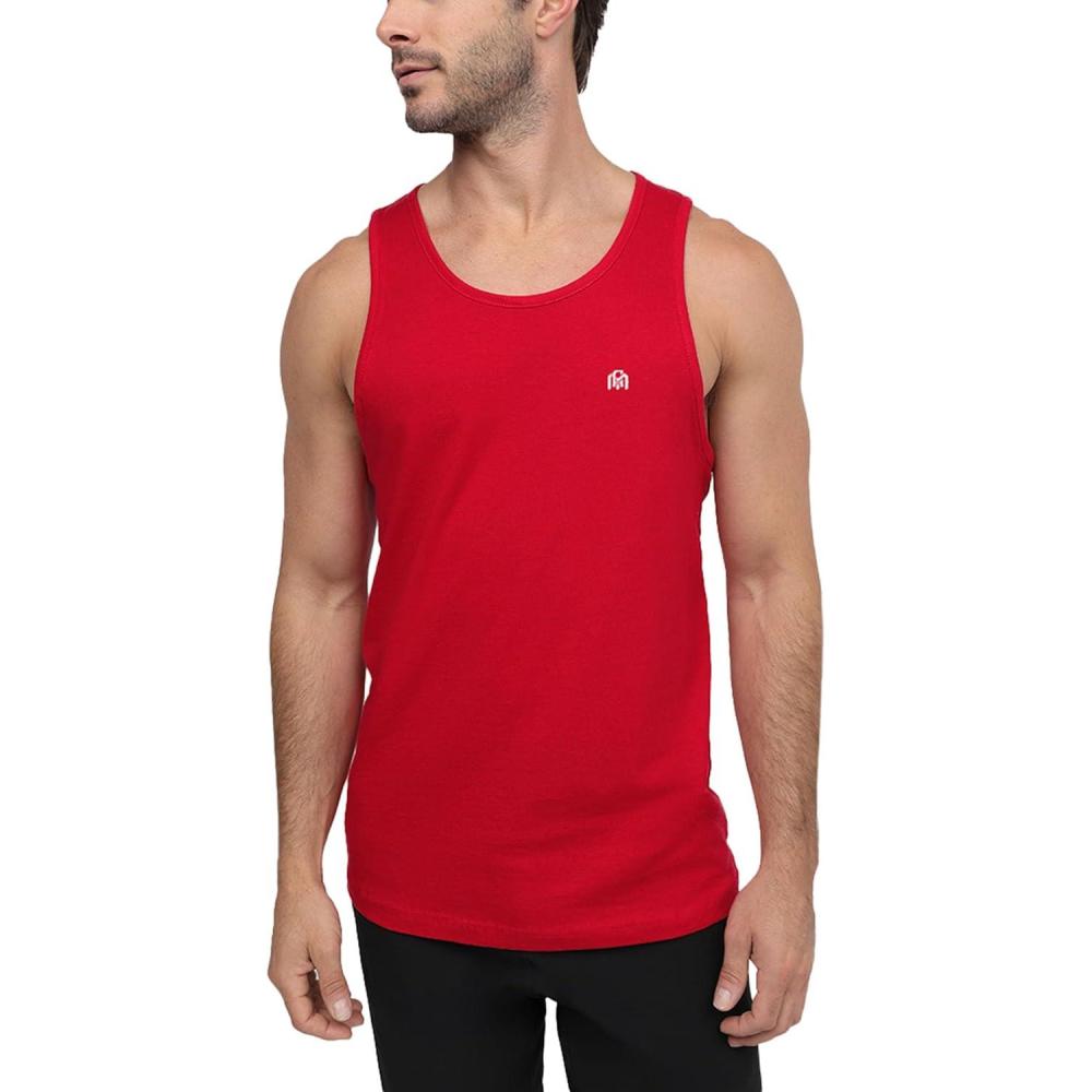 INTO THE AM Basic Tank Tops for Men – Minimal Plain Tanks for Beach Exercise Casual Wear S – 2XL(Branded – Red)