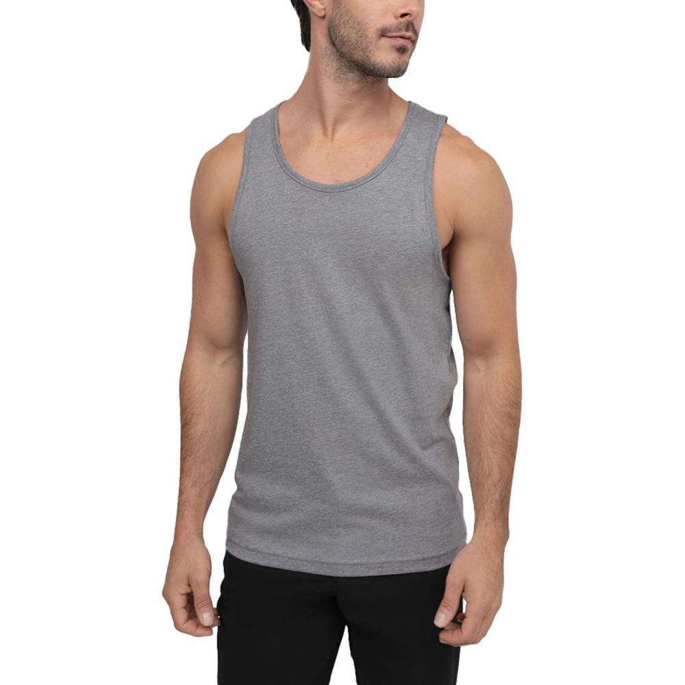 INTO THE AM Basic Tank Tops for Men – Minimal Plain Tanks for Beach Exercise Casual Wear S – 2XL(Non Branded – Grey)