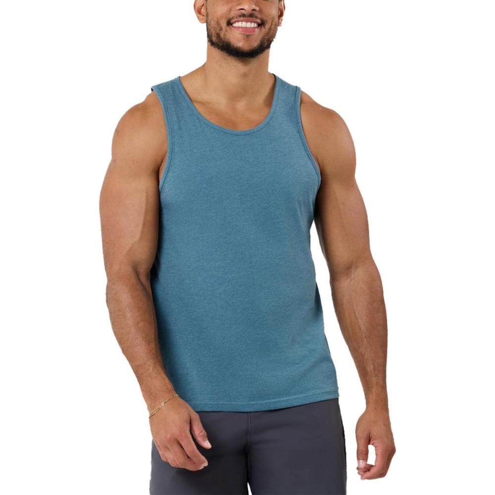 INTO THE AM Basic Tank Tops for Men – Minimal Plain Tanks for Beach Exercise Casual Wear S – 2XL(Non-branded – Indigo)